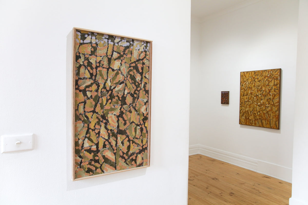 His work draws inspiration from the Australian landscape and stems from studies made during painting trips out bush, where he camps, lives simply and translates thoughts to paper and wood.