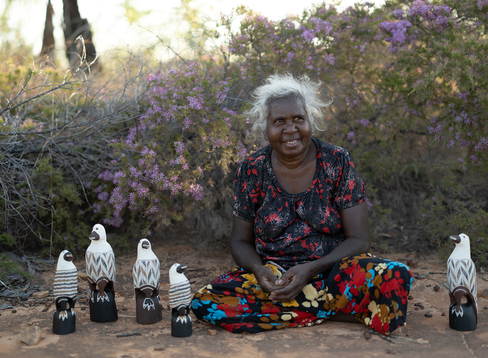 Judy Manany is an accomplished artist working from Elcho Island Arts, whose work practice includes painting, carving, and weaving. She is the daughter of Mithinarri Gurruwiwi, a very well-known bark painter who she was very close to. Manany would watch and learn from him as they visited country and he painted.