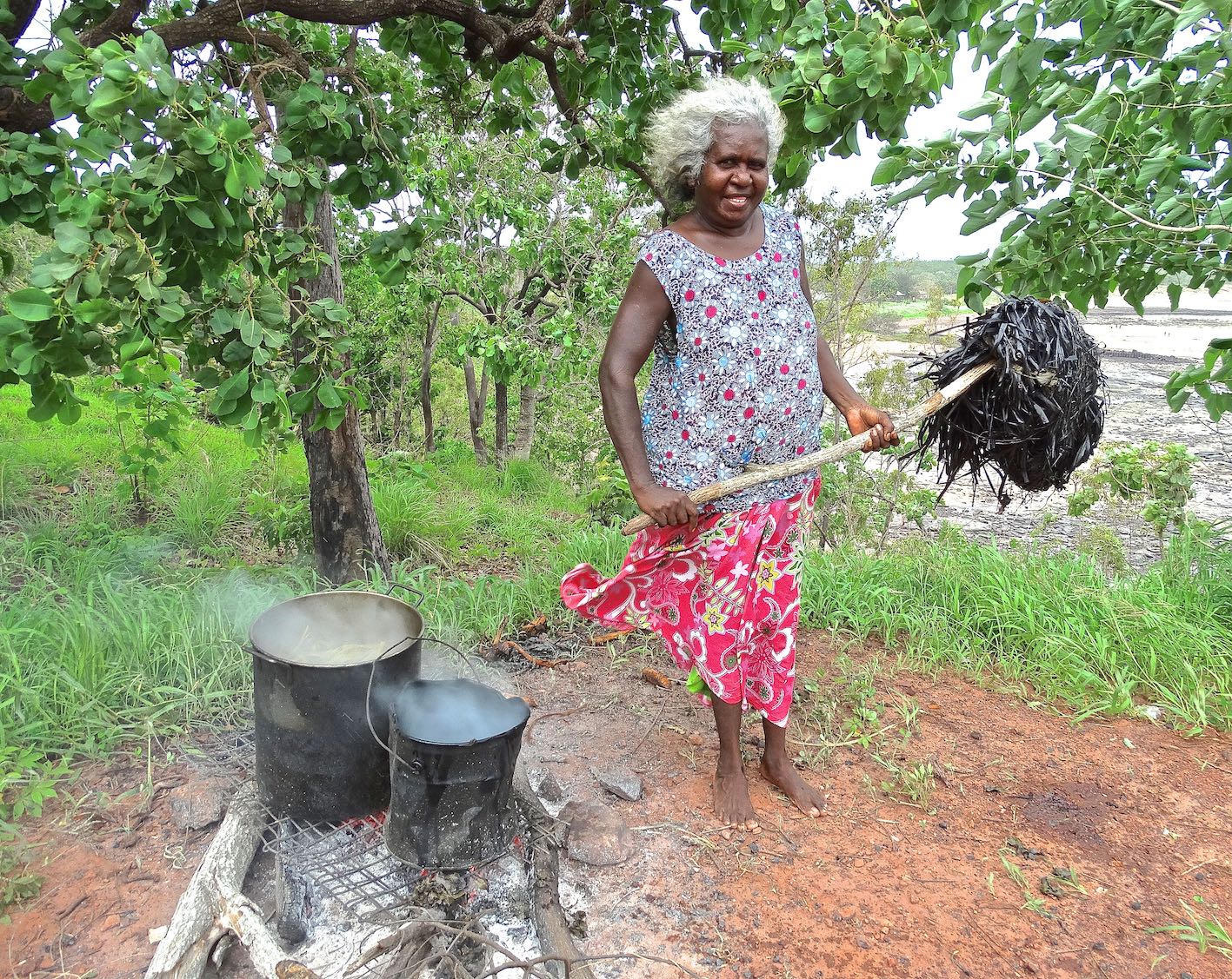 I started making soft sculpture animals with pandanus in 2008. I experimented with new ways of weaving to make fish, turtles, camp dog, piggy, pussy cat, and owl. Now people really like these, and we have many exhibitions with soft sculpture and carvings’.