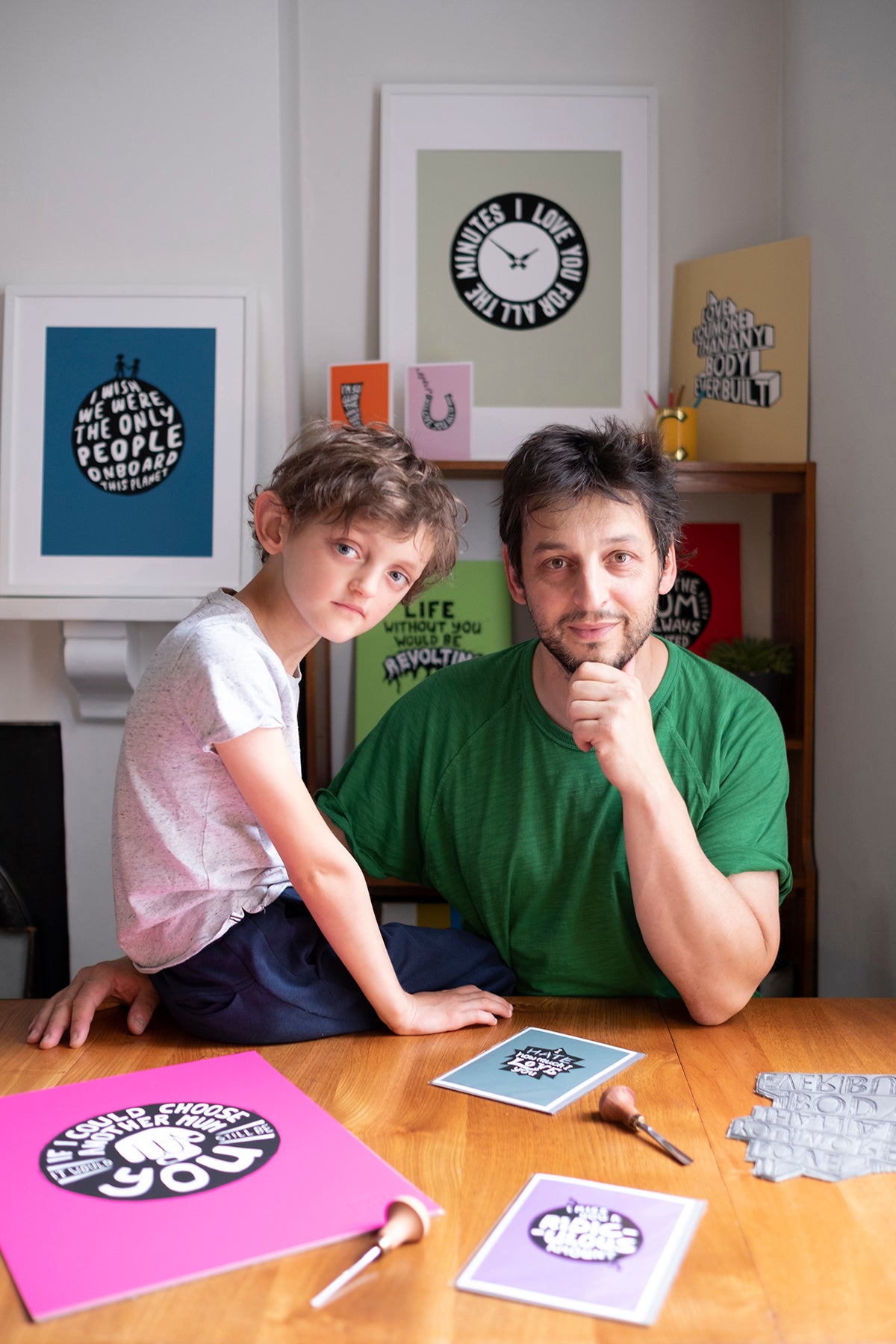 Woodism is an art collaboration between Woody, a young autistic boy, and his father who brings to life Woody's unique phrases as typographic linocut designs.