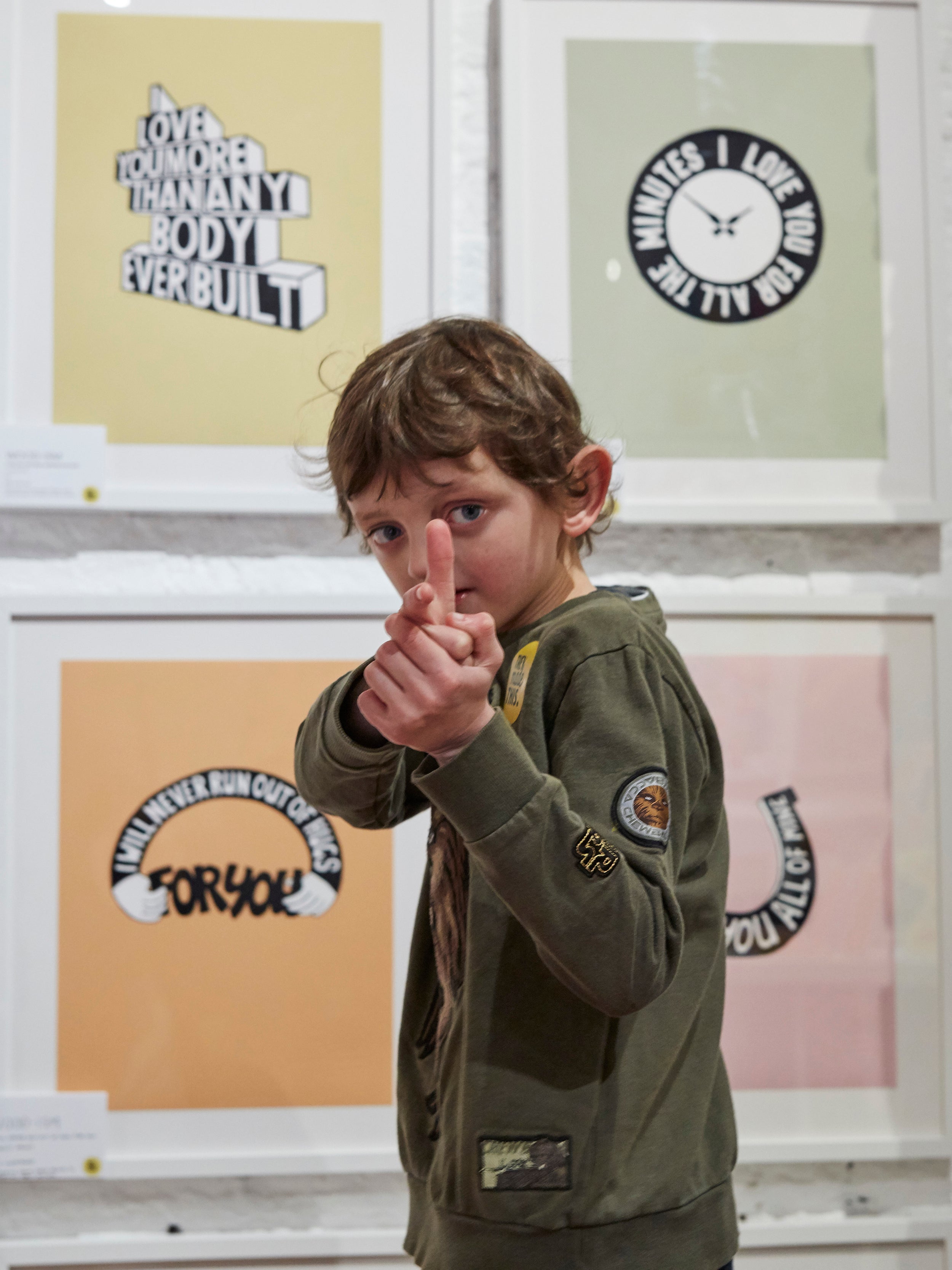 At the age of three Woody was diagnosed with autism. Appreciating the unique way of viewing the world and expressing himself, Woody’s dad began creating linocut carvings of some of his original phrases as a way of holding on to Woody’s touching words.