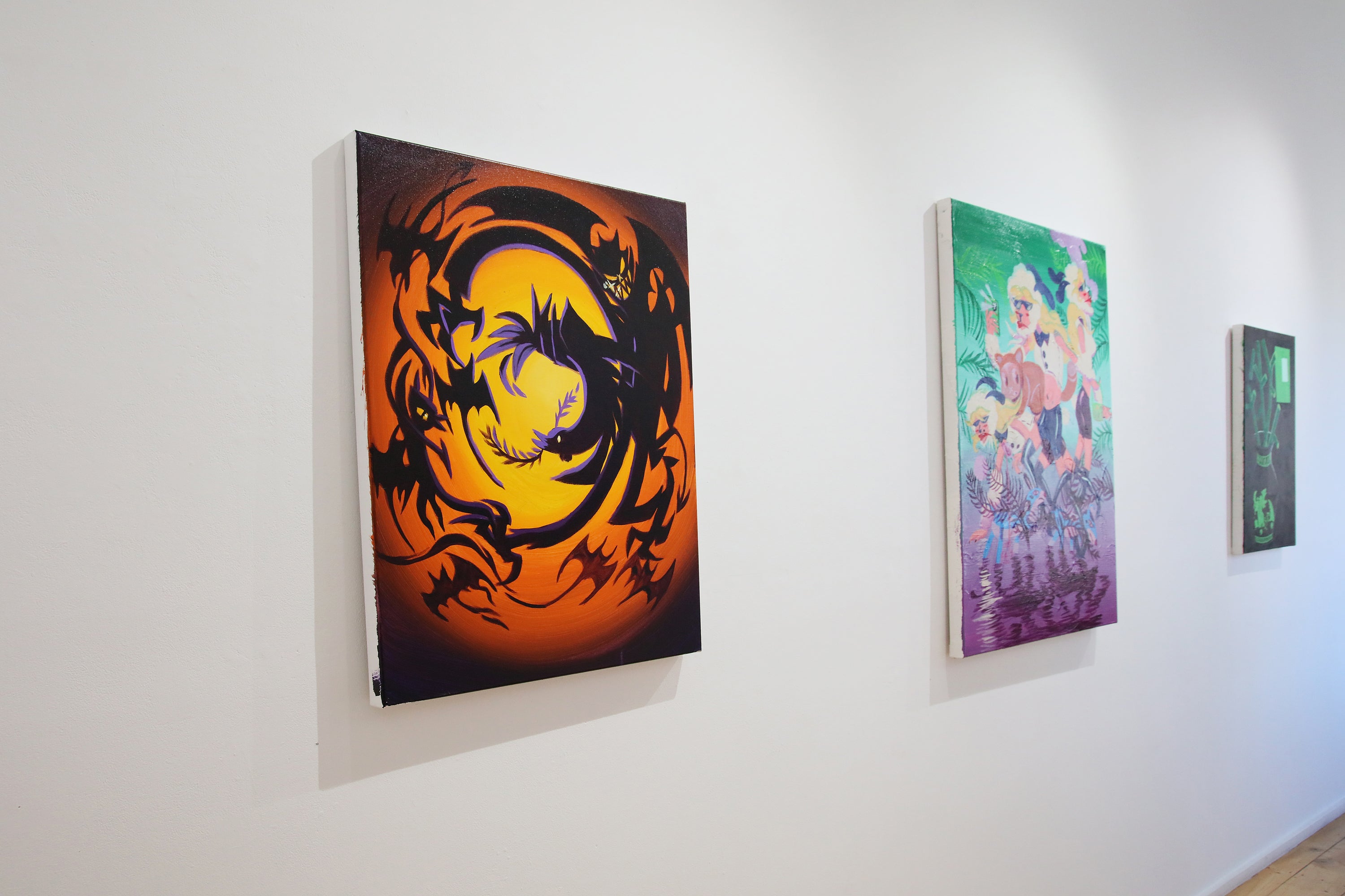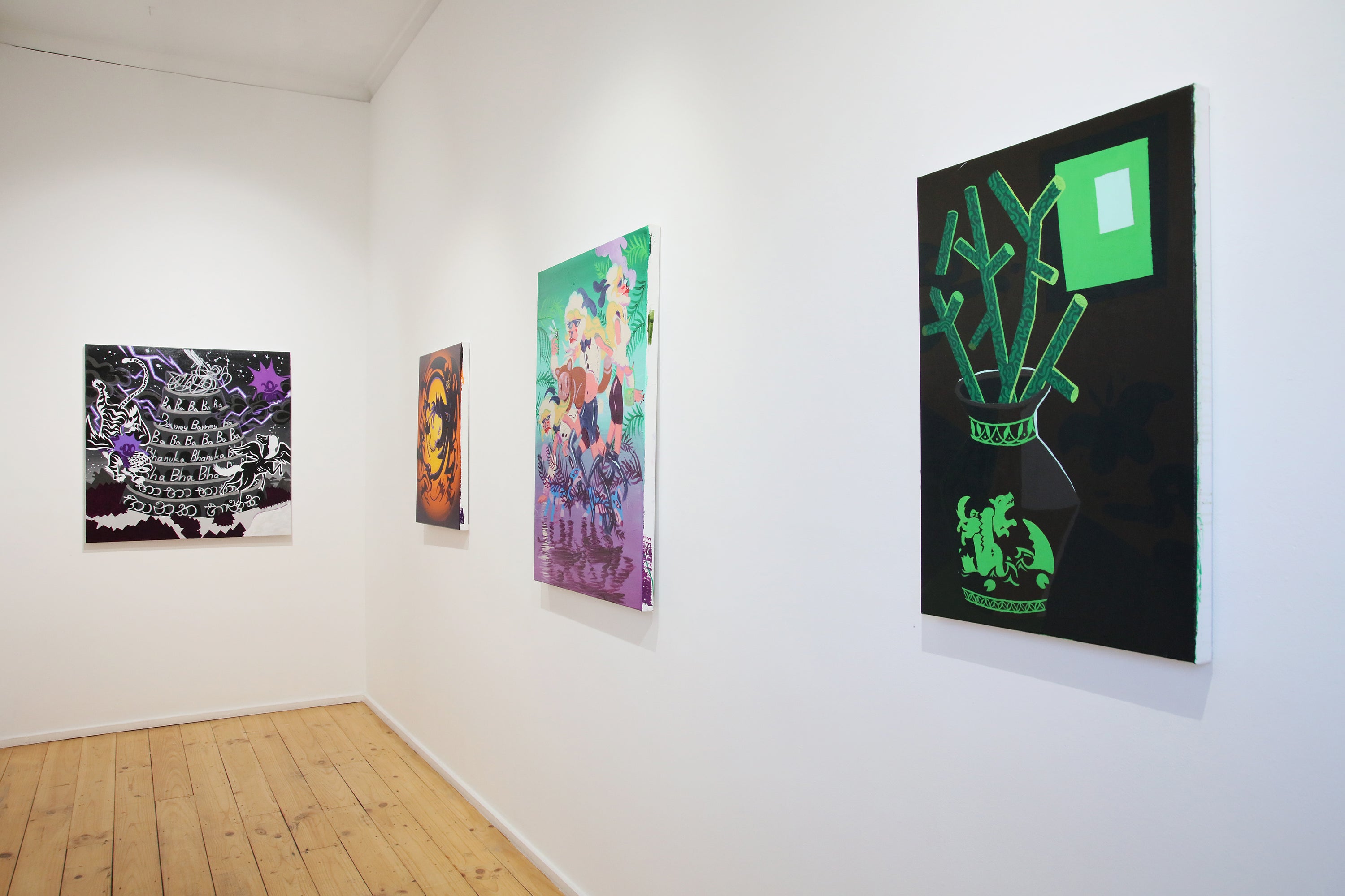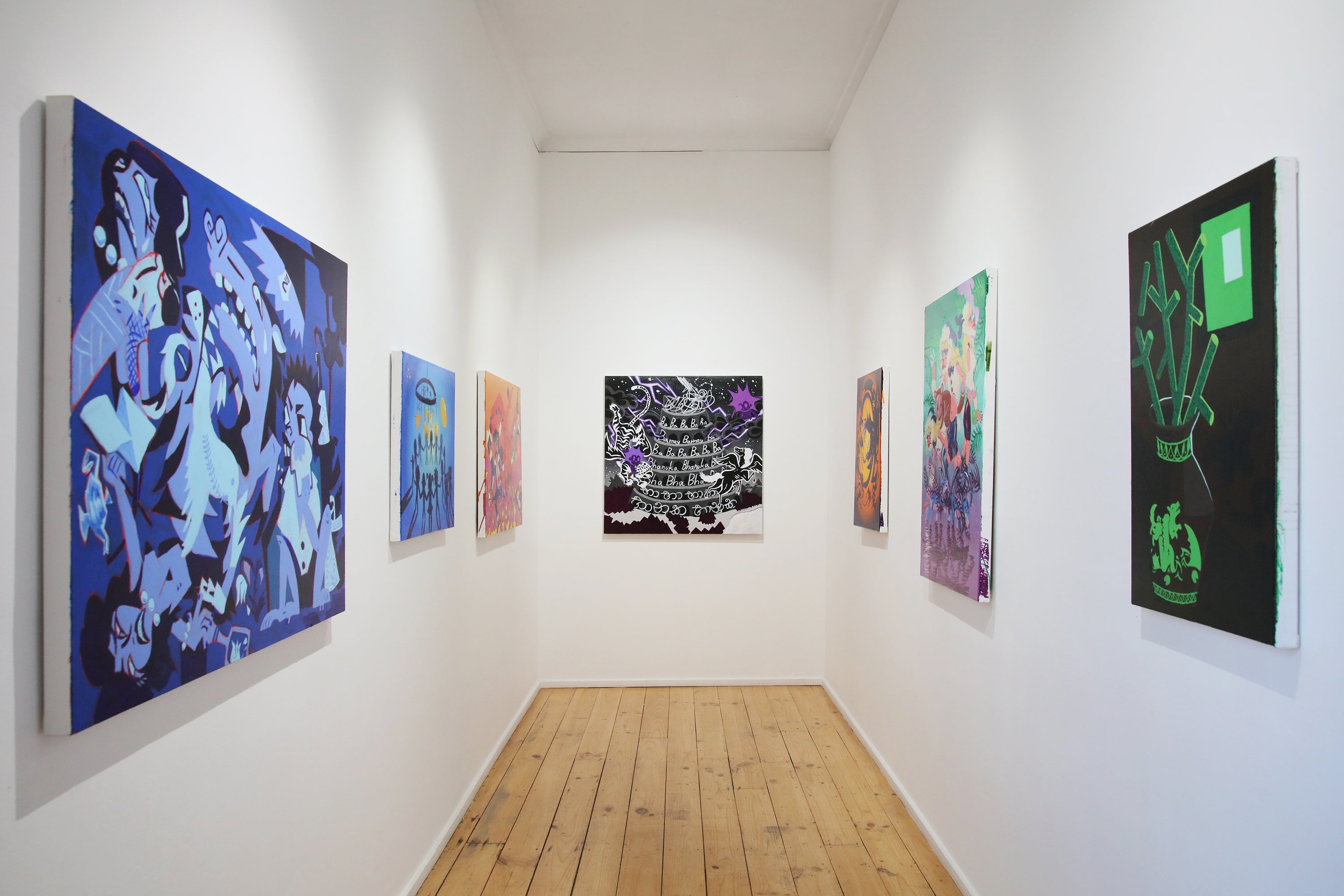 Executed in acrylic on pre-stretched canvas, left unframed, these paintings embrace modernity’s desire for speed, clarity, and reproducibility whilst rejecting the notion of art as mere decoration