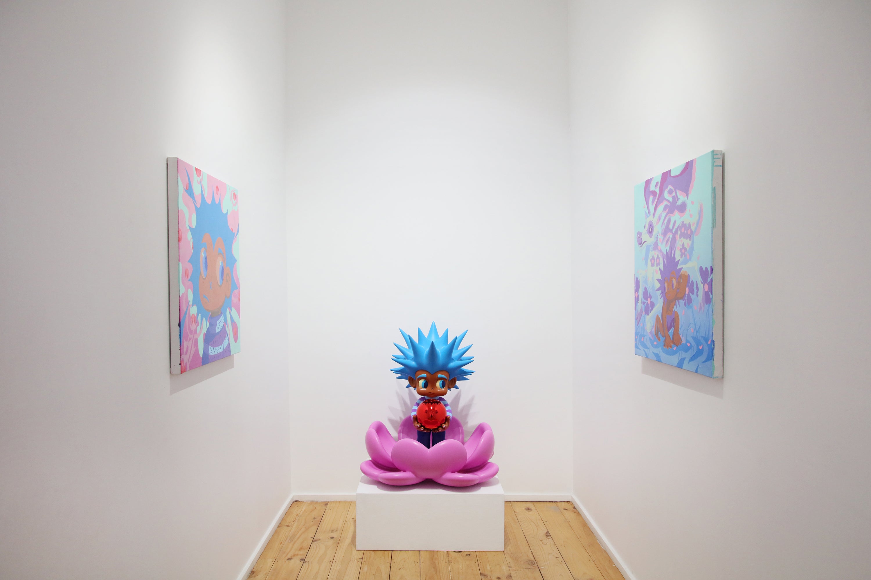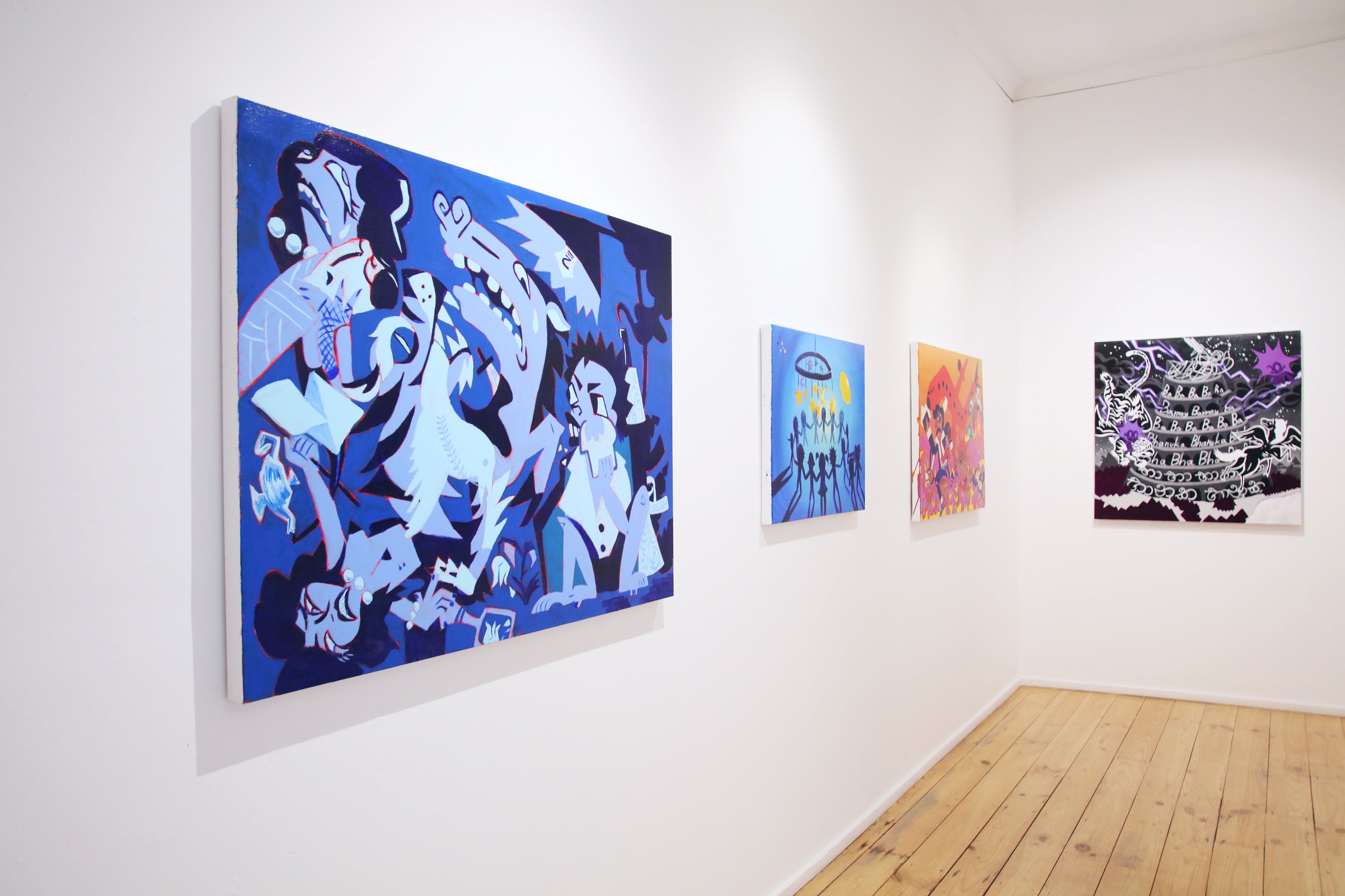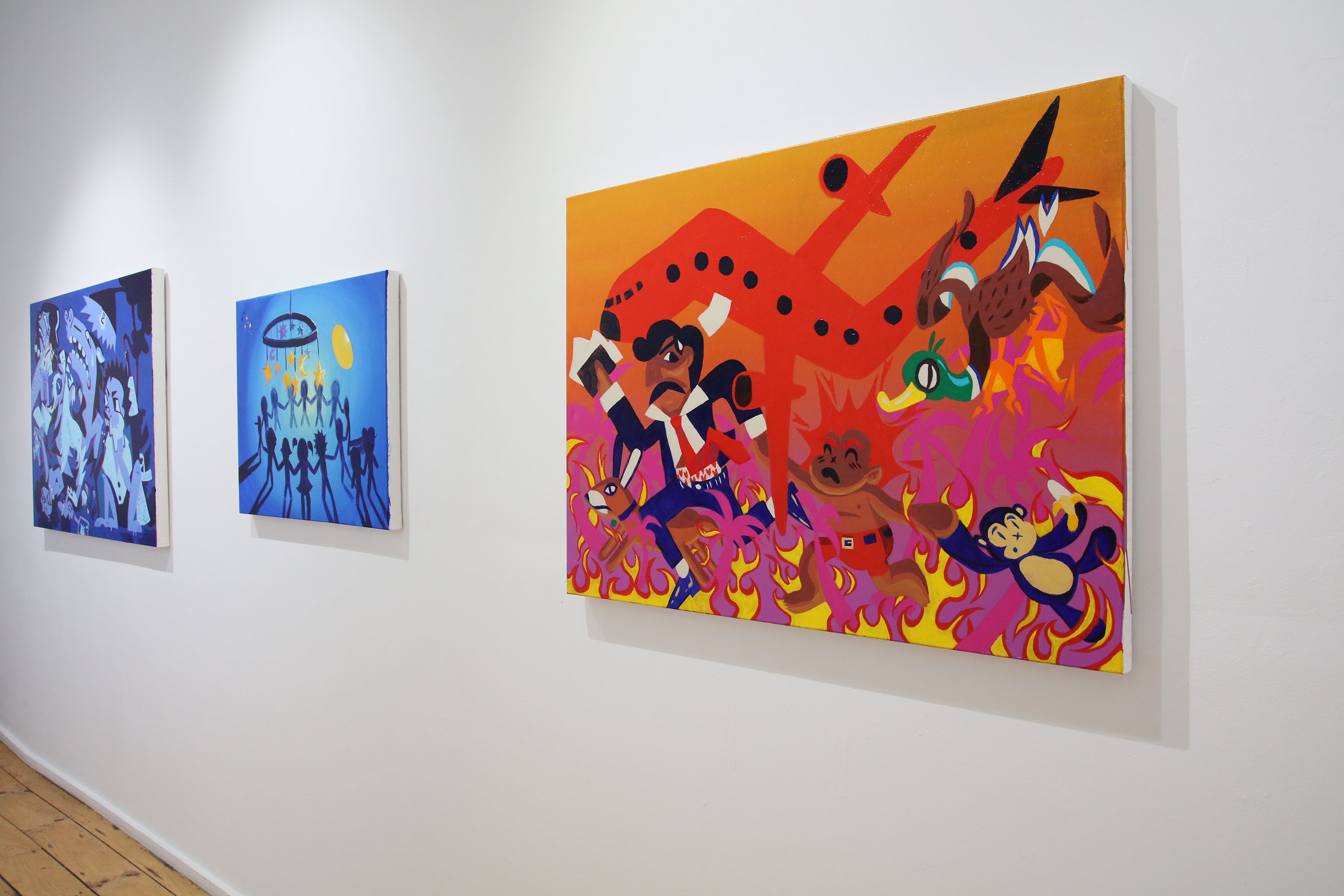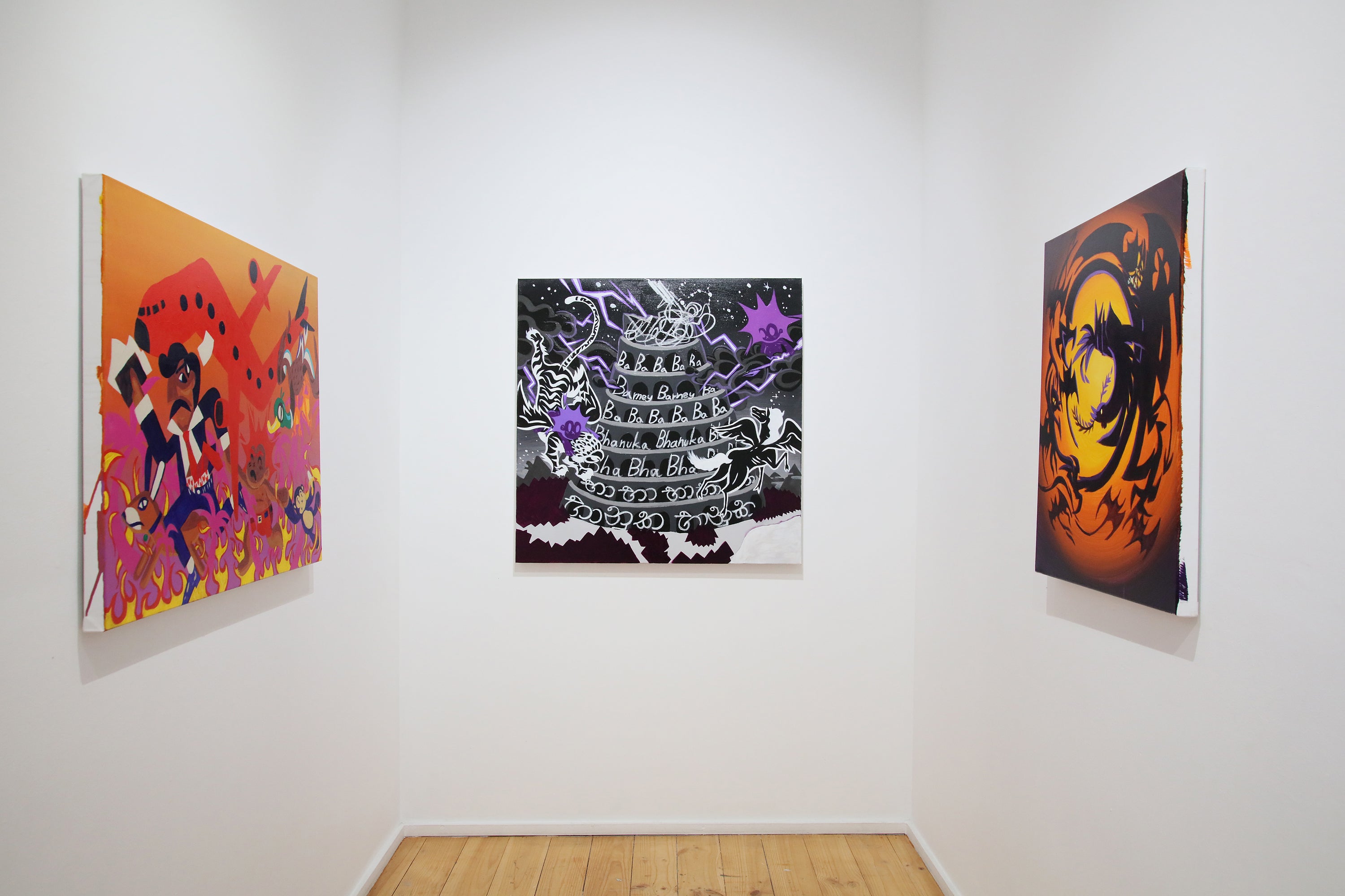 The title references the echidna—a mammal that lays eggs—as an emblem of “in-between” states that defy easy categorisation. In the same spirit, the artist’s work blends illustration and contemporary expressionism, reflecting his struggle to integrate into a new society while preserving his heritage. By blending playful imagery with the themes of identity, he creates art that resonates with both a three-year-old and a purist alike.
