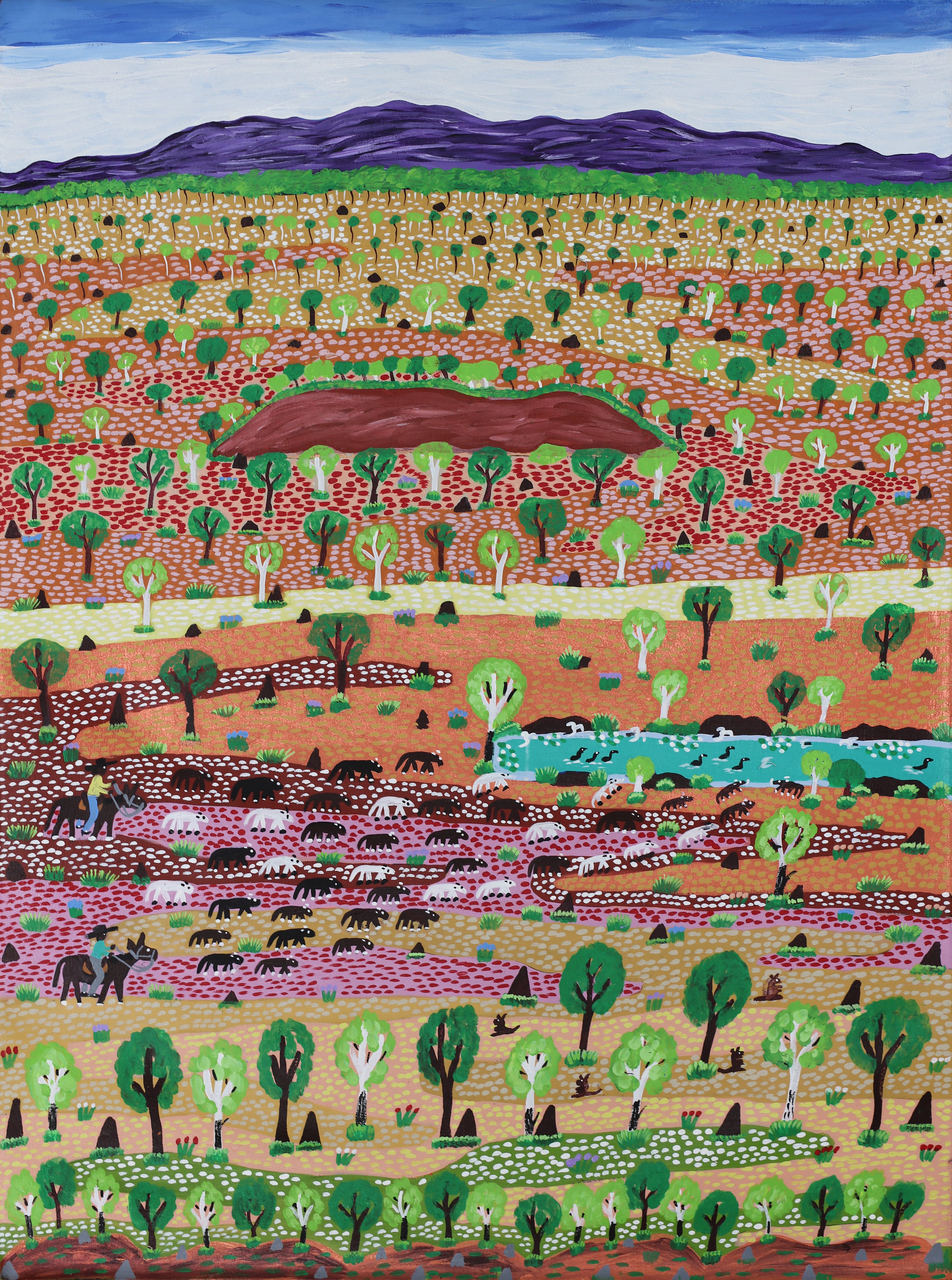 "I was thinking about painting in 2003, and I came to the Art Centre to start painting then. I didn’t know how to paint, but my sister Amy taught me how to paint when I came to the Art Centre. I saw how she was doing the painting, and I started learning then, how to paint. I got some style from her, but after that I got my own style, different way. I got my own style then."
