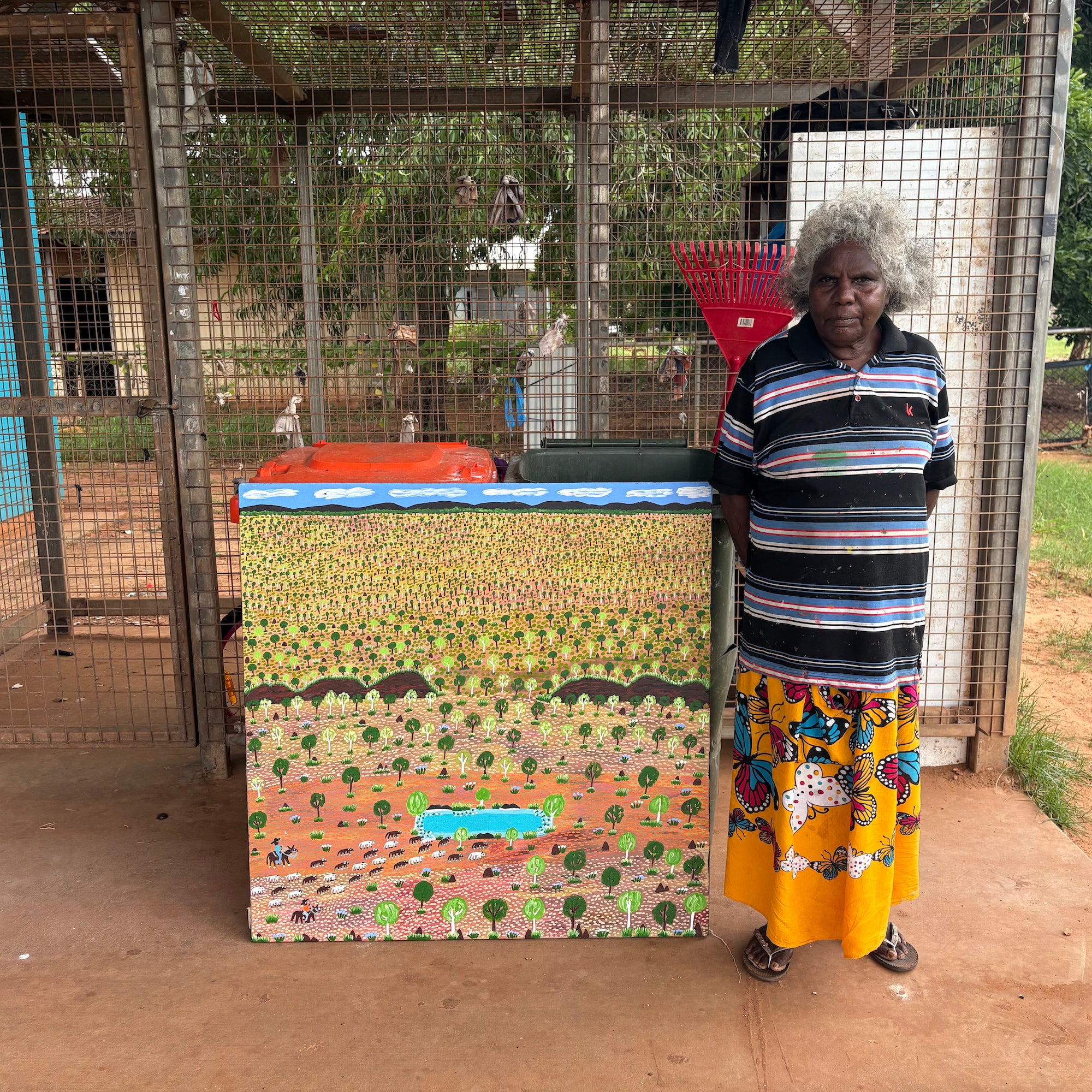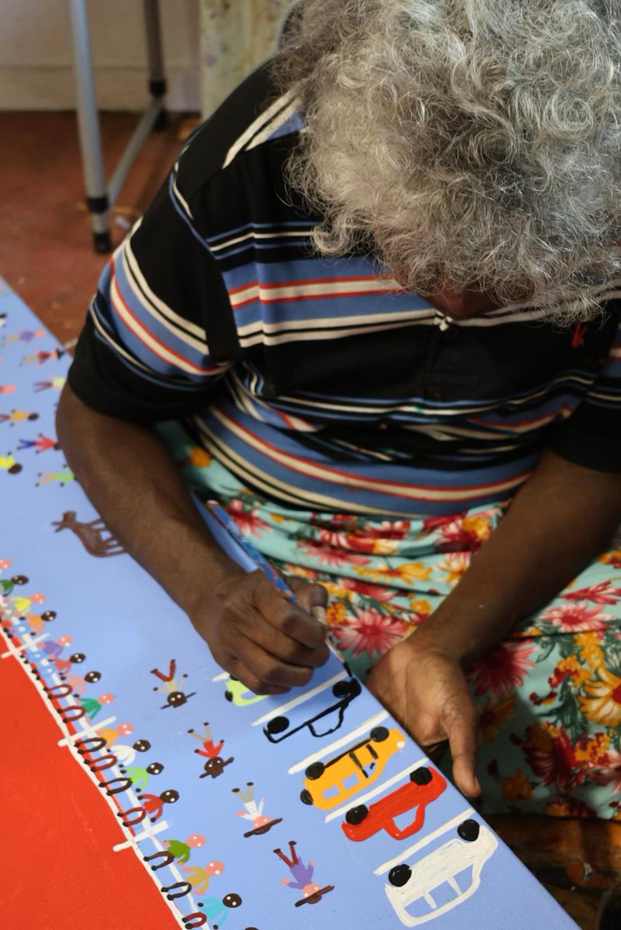 Jill Daniels is an artist based in Ngukurr, South East Arnhem Land, known for her vibrant depictions of life in the remote community.