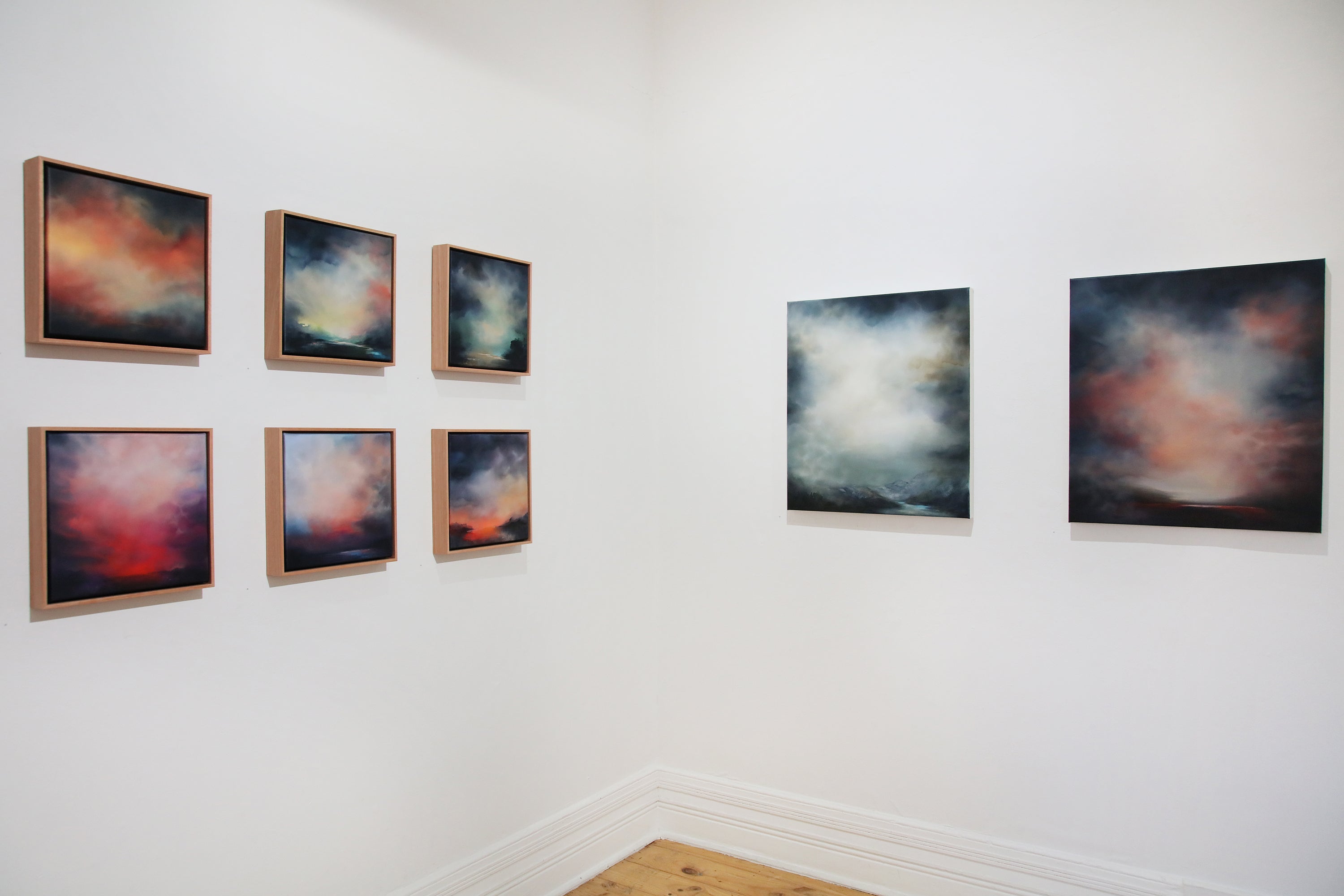 Working primarily in acrylic on canvas, Harvey builds each painting through delicate glazes and transparent layers, creating softness, depth, and a sense of movement. Her process is intuitive, guided by a romantic and theatrical approach to colour and atmosphere.