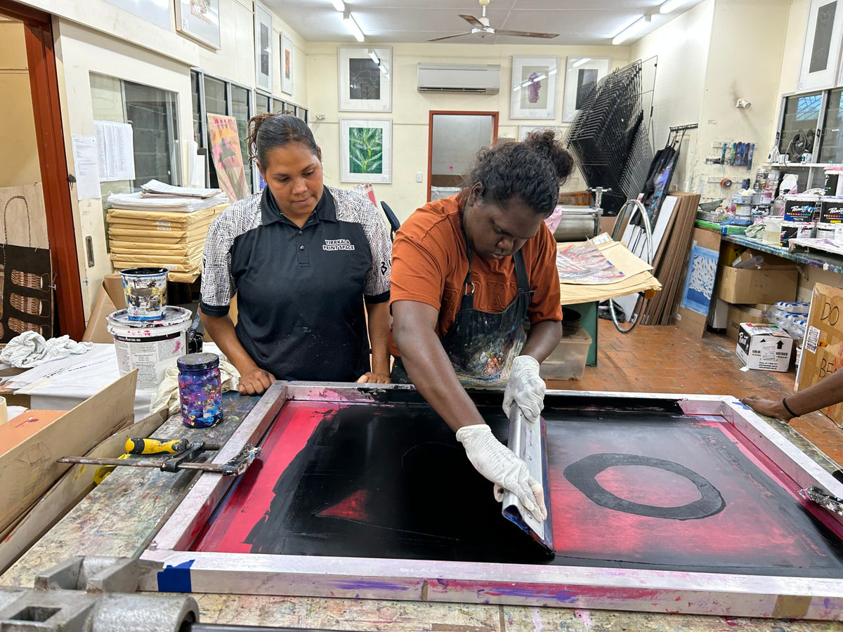 One of the few printing studios based in community–working to serve community and employ community members–it’s philosophy is to provide an environment to educate, engage and strengthen the vision of Yolŋu through artistic skills development and exploration of non-traditional techniques. It acts as a training area for emerging artists and provides employment for Indigenous people.