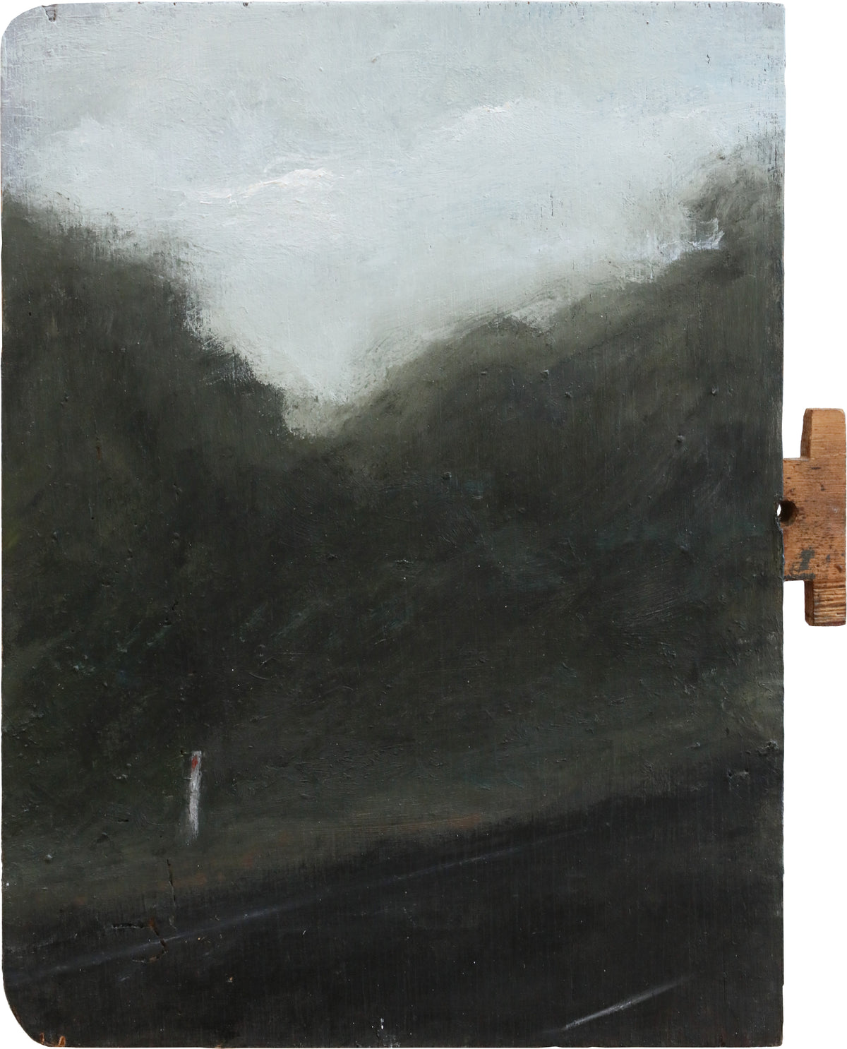 Image: Between here and there #2, Caitlin Reilly, oil on reclaimed timber, 30x23cm.